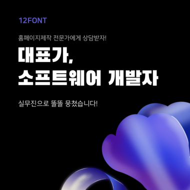 안녕하세요:) 12폰트입니다. 12폰트는 실무자들로만 구성이 되어있는 회사입니다.대표부터 소프트웨어 개발자로서 많은 실력을 구비하여, 수많은 프로젝트를 참여하고 불필요한 개발을 줄이고실용성있게 전체적으로 총괄 및 개발들을 하고 있습니다.보통은 외주사 및 프리랜서들에게 업무를 넘겨 홈페이지제작을 하는경우가 많은데요. 12폰트는 외주없이 자체에서 모든 사항을 해결합니다.디자이너, 포토그래퍼, 영상편집자등 다양한 전문분야의 실무담당자들과 업무를 하고 있으며저희는 영업사원이 없이 실무진으로 구성이 되어있…